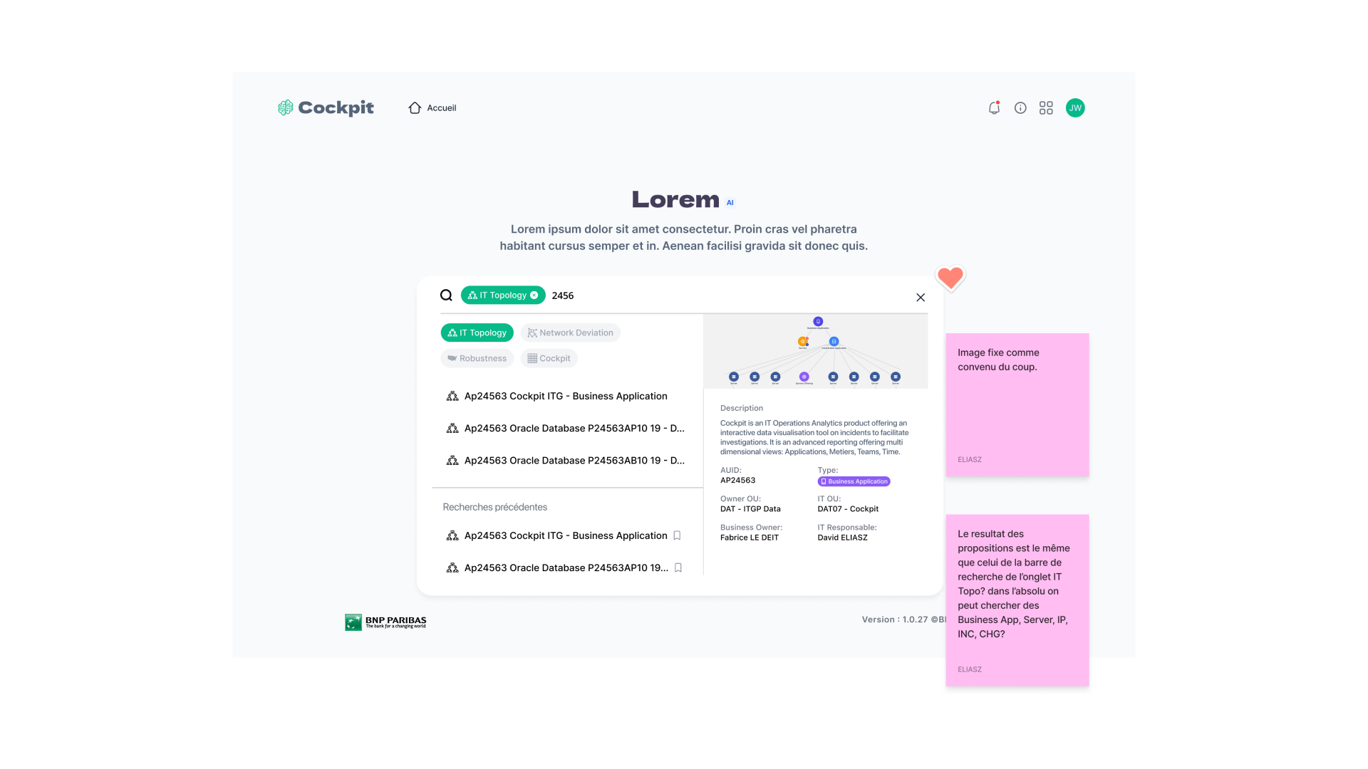 Dans le cadre d’un projet stratégique de BNP Paribas, j’ai été intégré comme consultant UX/UI senior pour refondre la plateforme AIOps. Cette plateforme vise à améliorer les opérations IT à l’échelle du groupe, en s’appuyant sur l’analyse intelligente de logs applicatifs et systèmes.