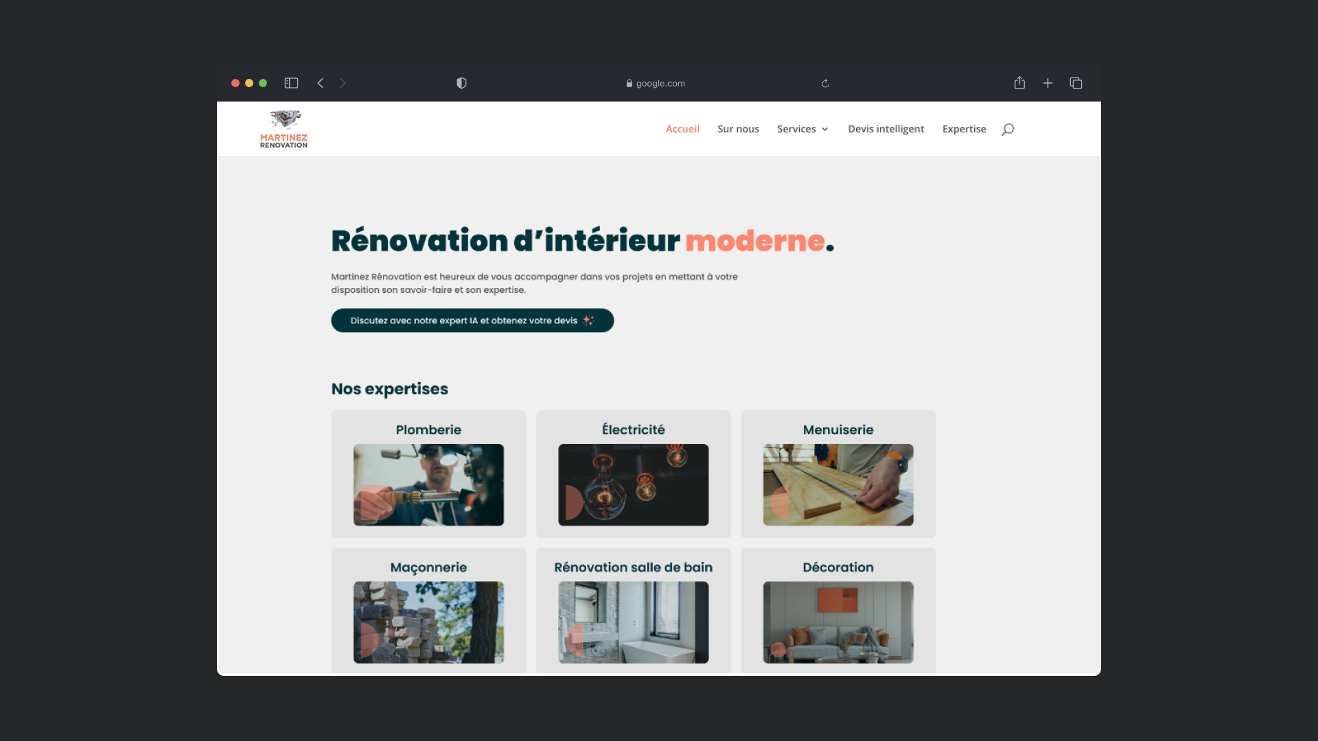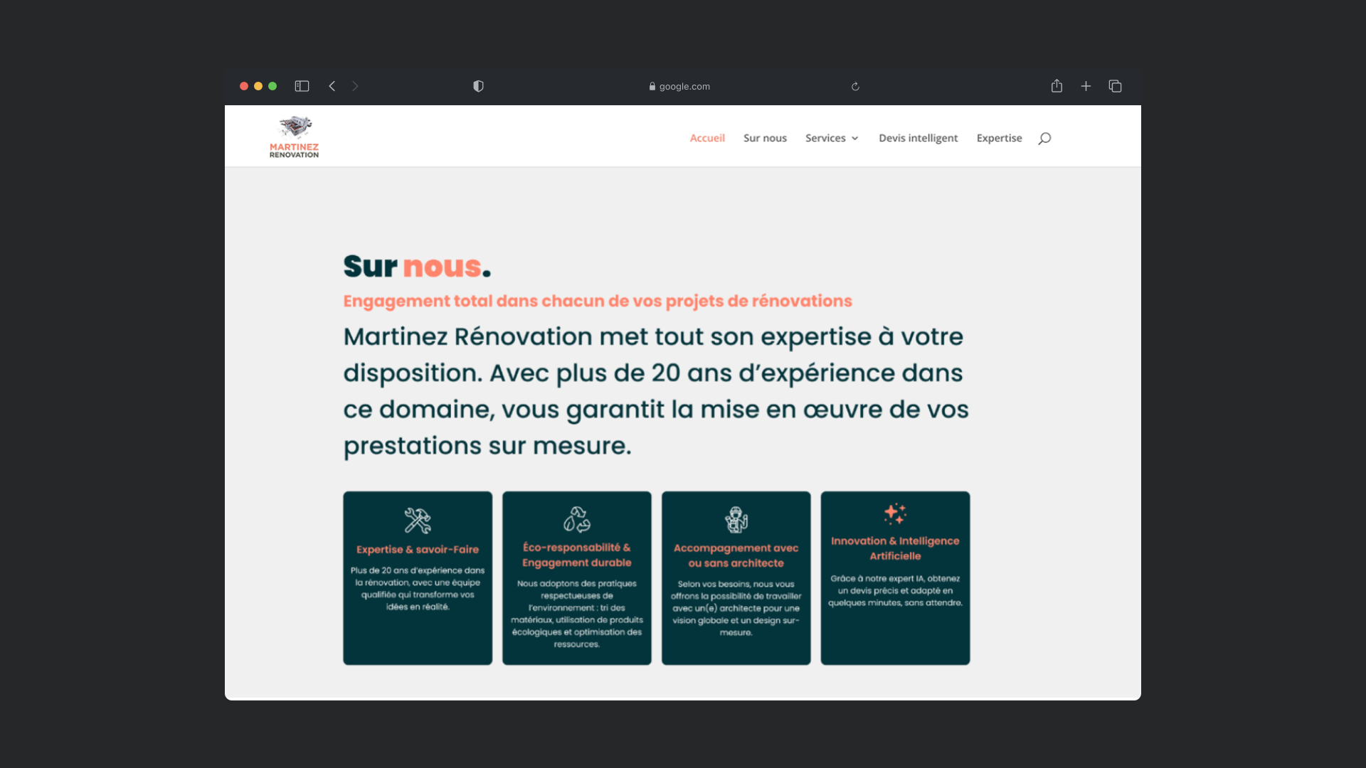 Tout a été conçu pour que Martinez Rénovation attire les bons clients… et se concentre sur son vrai métier.